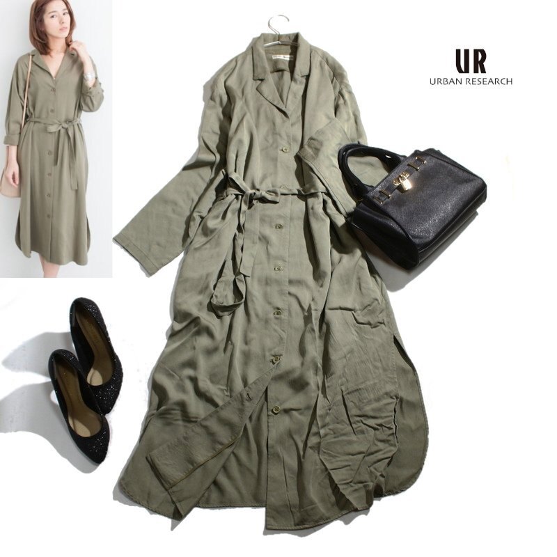 - 美品 URBAN RESEARCH アーバンリサーチ TVドラマ着用 2way ワンピコート ワンピース コート カーキグリーン 緑 ミリタリー 羽織