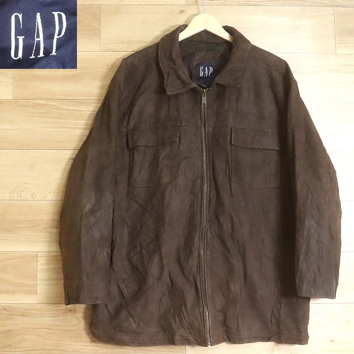 > K7K/O8.20-3 アメリカ古着 GAP ギャップ 本革 レザージャケット 革ジャン 皮ジャン ジップアップ ブラウン メンズ XL