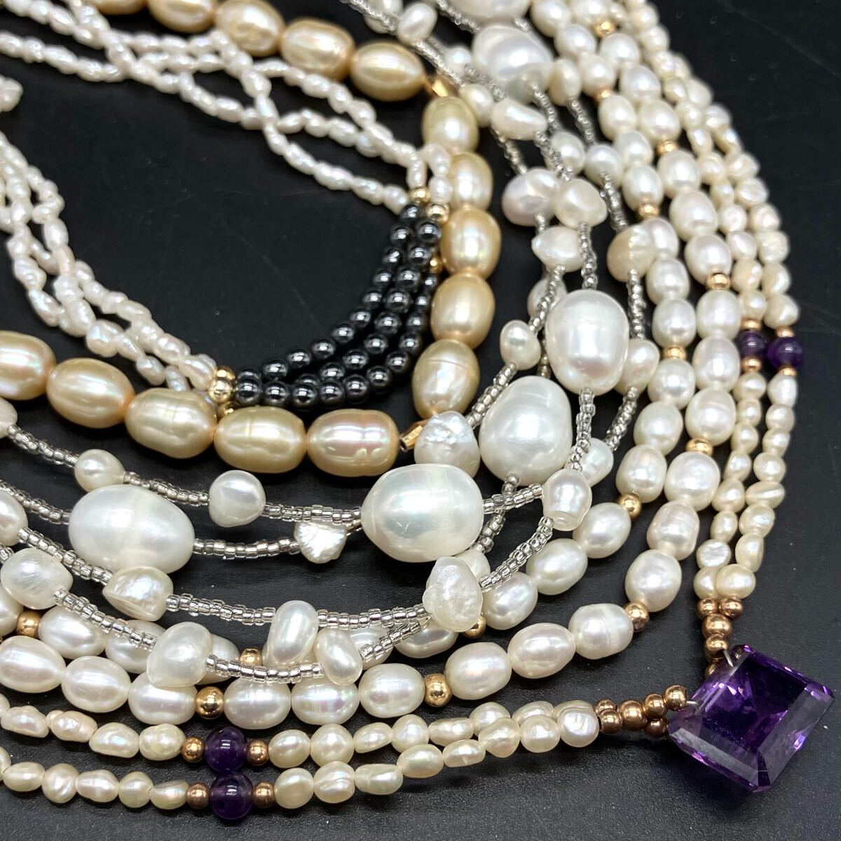 - 【セット売り】◆本真珠ネックレス5点おまとめ/天然アメジスト/天然ヘマタイト付◆S W915 約165.2g パール ジュエリー ホワイト系 DD4/DI5