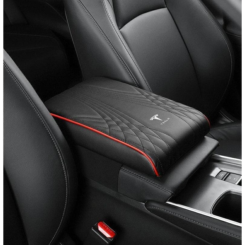 - テスラ TESLA 車 アームレストマット コンソールボックスパッド 形状記憶 肘置きカバー 収納ボックスマット 革製 高めパッド