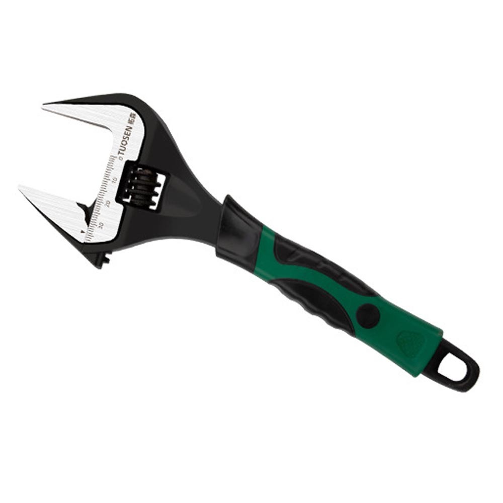 - モンキーレンチ 中型 ワイド 大開口 レンチ 配管 水栓 開口部 目盛り付き 緑