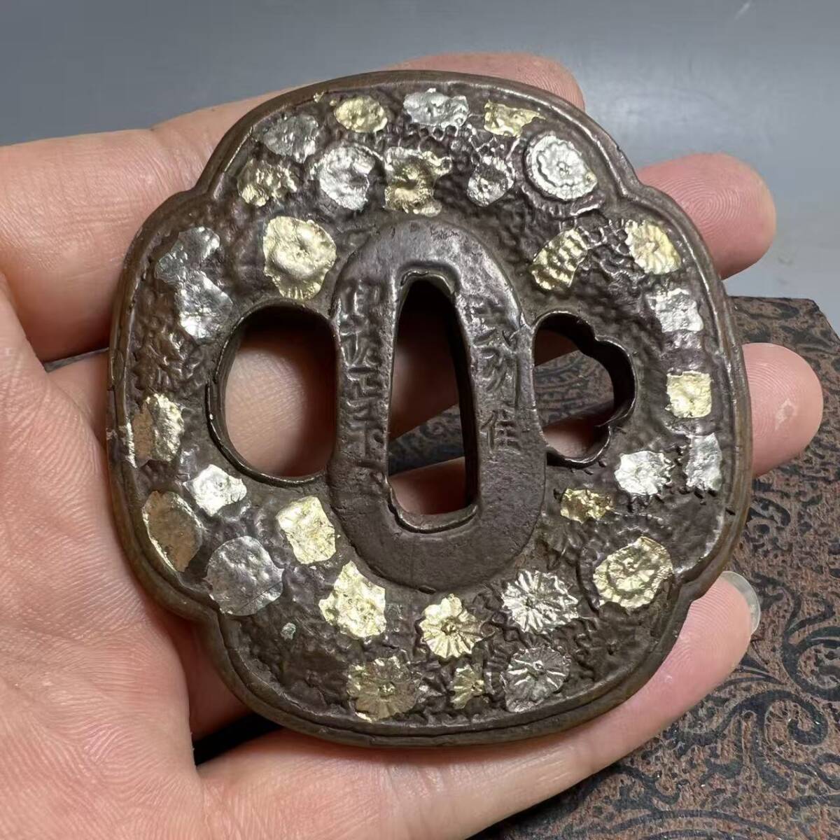 - 旧家蔵出し 銅製細作 錯金銀 花卉紋 透空彫 鍔 武具 刀裝具 刀当 刀劍 極細工 置物擺件 美術品 旧家蔵出 旧家供養品