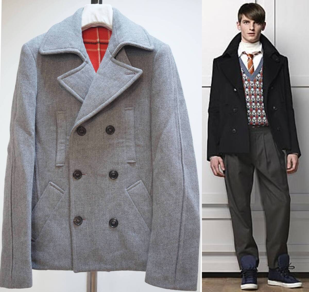 > VIKTOR&ROLF ヴィクター&ロルフ 09AW裏チェック地ピーコート44灰 Italy製 V&R