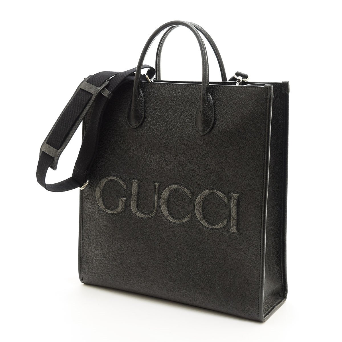 - □549708 新品同様 GUCCI グッチ 2WAYトートバッグ ショルダーバッグ GGスプリームロゴ 770975 レザー 24ss メンズ ブラック