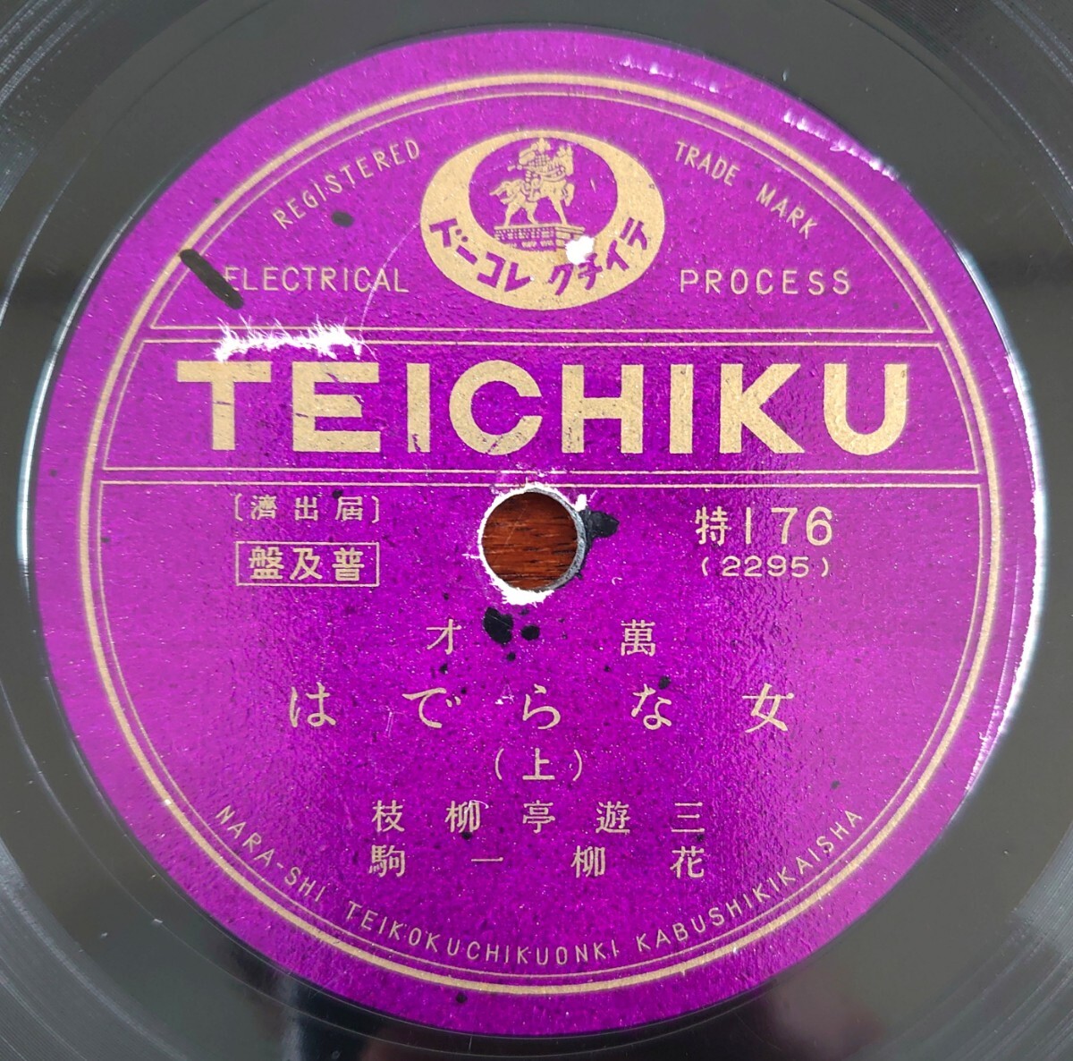 - 【SP盤レコード】TEICHIKU 特176 萬才/女ならでは(上・下)/三遊亭柳枝 花柳一駒