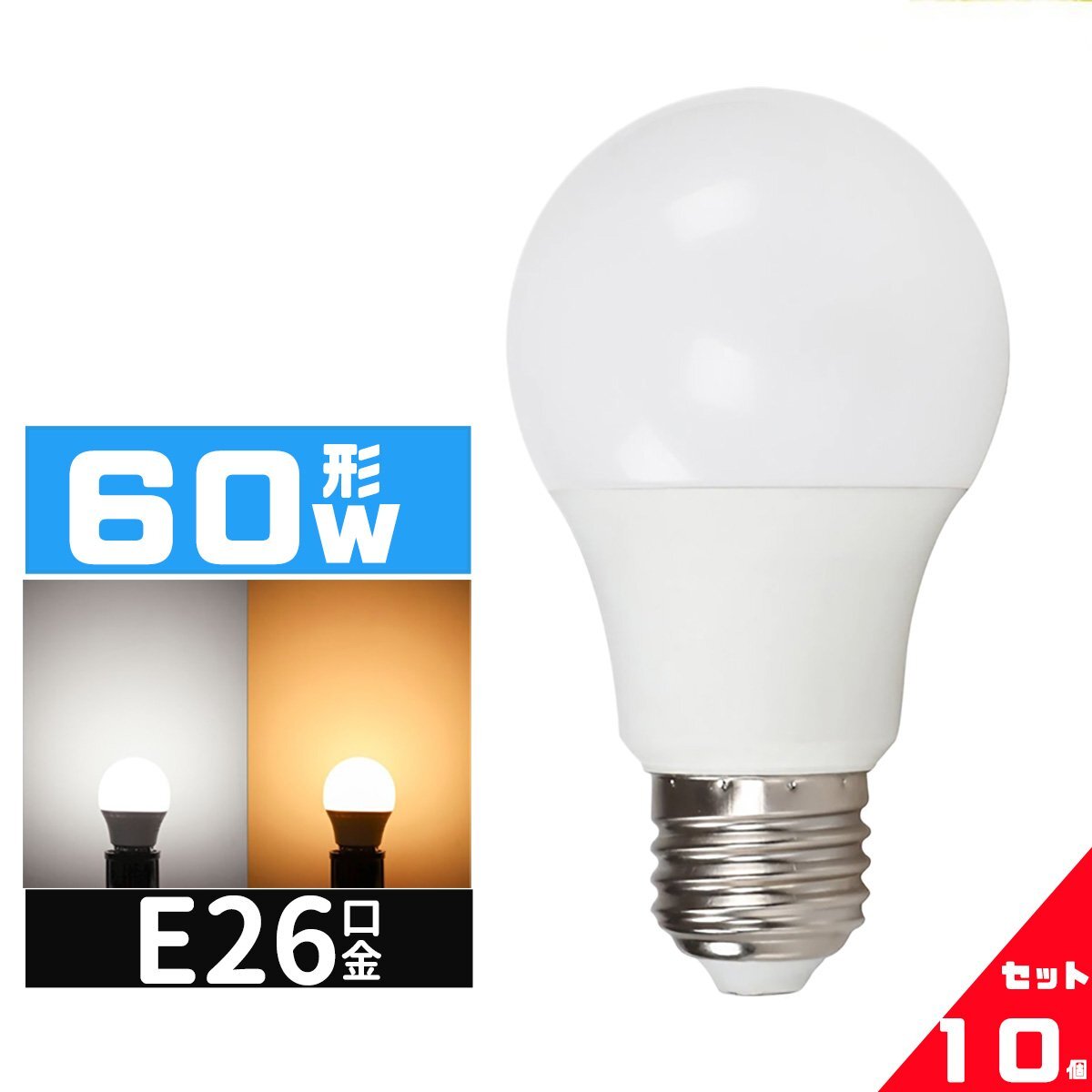 - LED電球 60W相当 e26口金 電球 LEDライト 60W 広配光 60形相当 LED電球E26 長寿命 広配光タイプ 密封形器具対応 6000K 昼光色 10個セット
