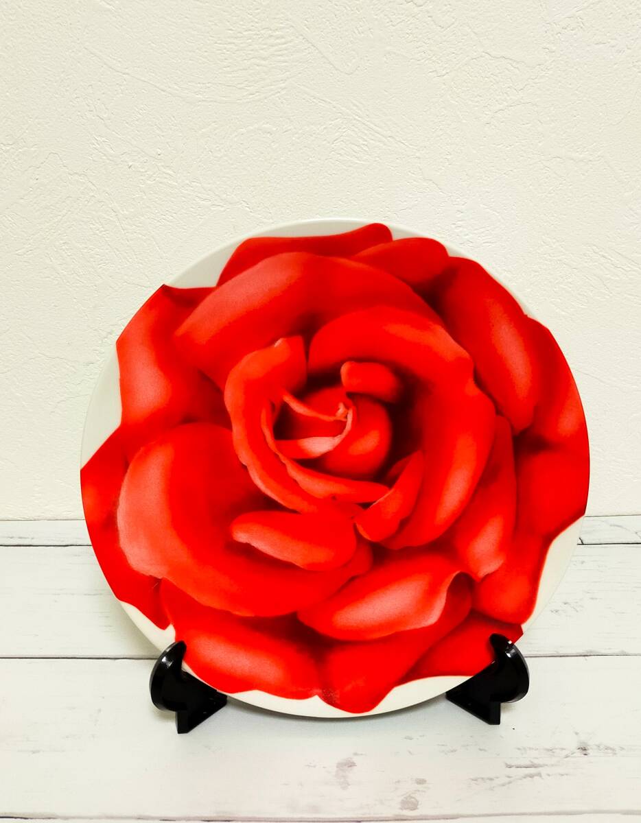 > 未使用★TAITU★プレート 21cm★レッド★バラ★タイツ―★イタリア食器★陶器製