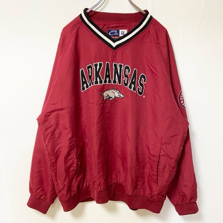 > 古着 used Cadre 長袖ナイロンプルオーバー NCAA ARKANSAS ワッペン Vネック ビックシルエット XLサイズ