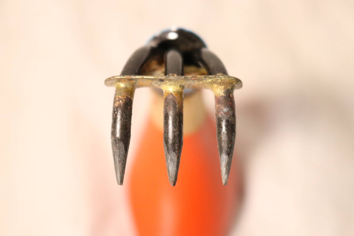 - 30mm/一寸 三ッ爪ノンコ 朱塗柄 カンジキ型 全長約14cm 三木殖産金物 特殊鋼 袋鉤 大工道具