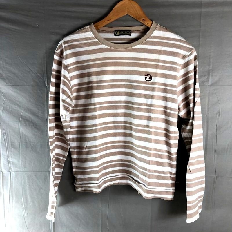 - T comme ca カットソー 長袖 胸元ワンポイント刺繍 ボーダー 綿100% ベージュ系 白 Lサイズ 2025082900107