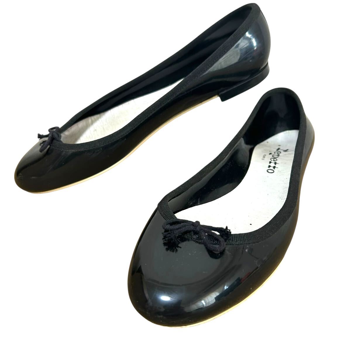 - ※P1 repetto(レペット) エナメルバレエシューズ フラットパンプス リボン ブラック 表記41(25.5cm相当)