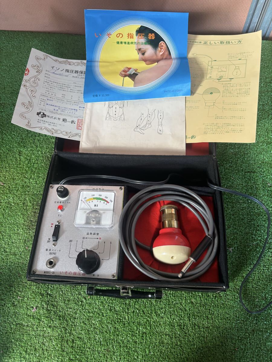 - 昭和レトロ家電 イソノ 指圧器 温熱マッサージ MD-35型 取説付き 動作品 家庭用温熱治療器 疲労回復 肩こり 神経痛
