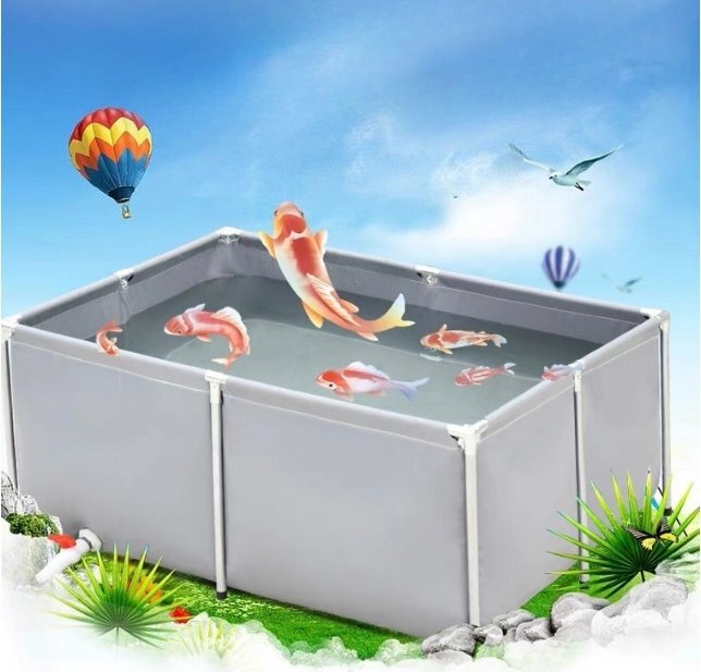 - 厚みのあるキャンバスの魚のいる池 ポータブル水貯蔵タンク PVC 折りたたみ式ペット犬パドリング プール ブラケット付き1x1x0.7m