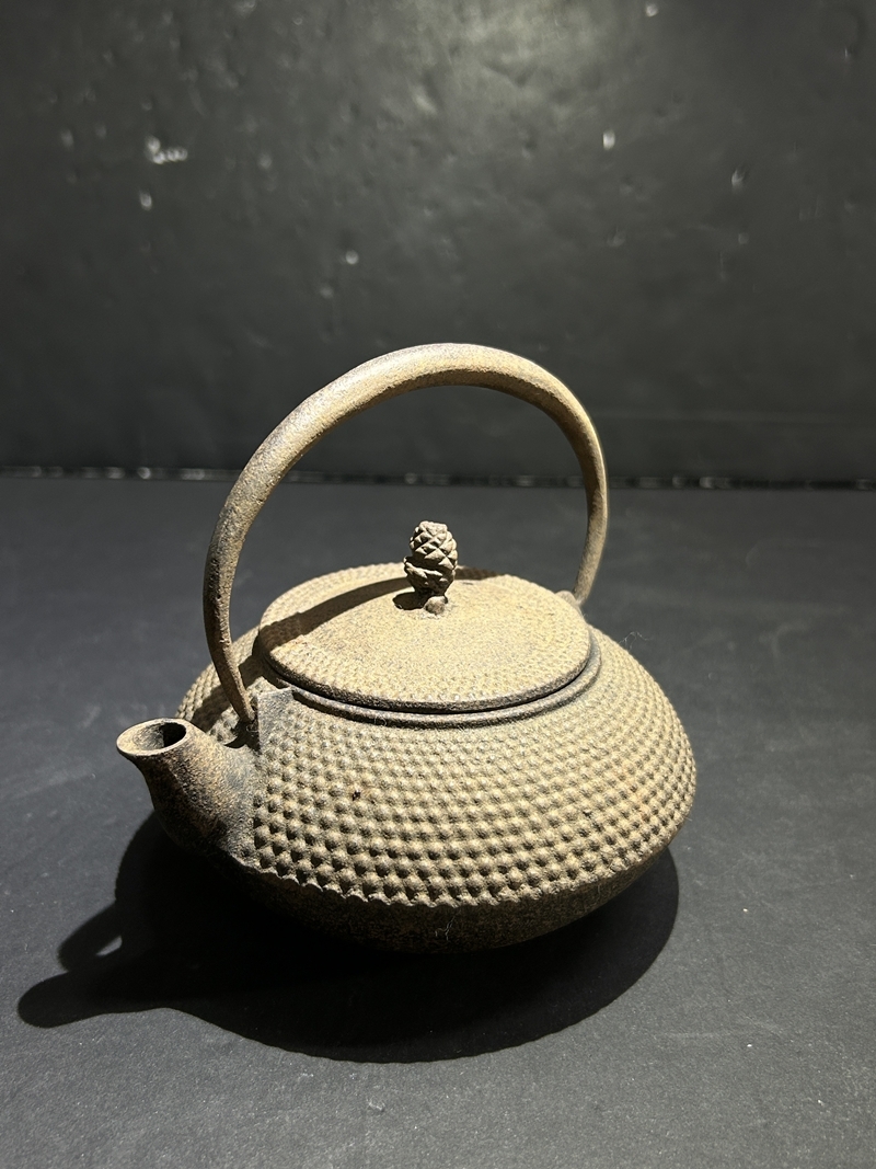 > ● コレクター必見 南部鉄器 鉄瓶 急須 茶瓶 湯沸かし アラレ 昭和レトロ 薬缶 重さ約665g 金属工芸 Nr975