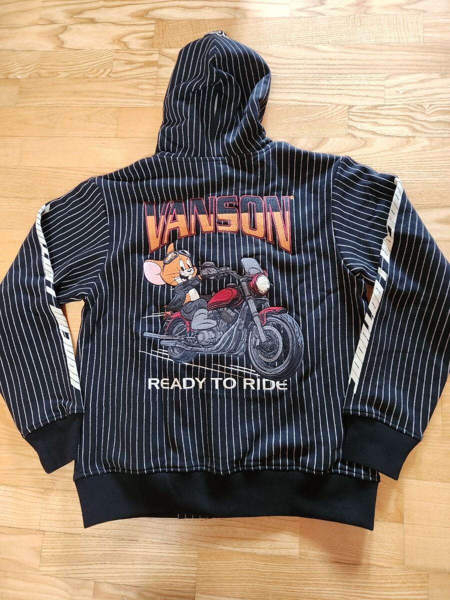 > 新作 送料込★VANSONバンソン TJV2533 『TOM&JERRY』トム&ジェリー 肉厚ジップパーカー バイカー BLACK WABASH ブラックウォバッシュ XL
