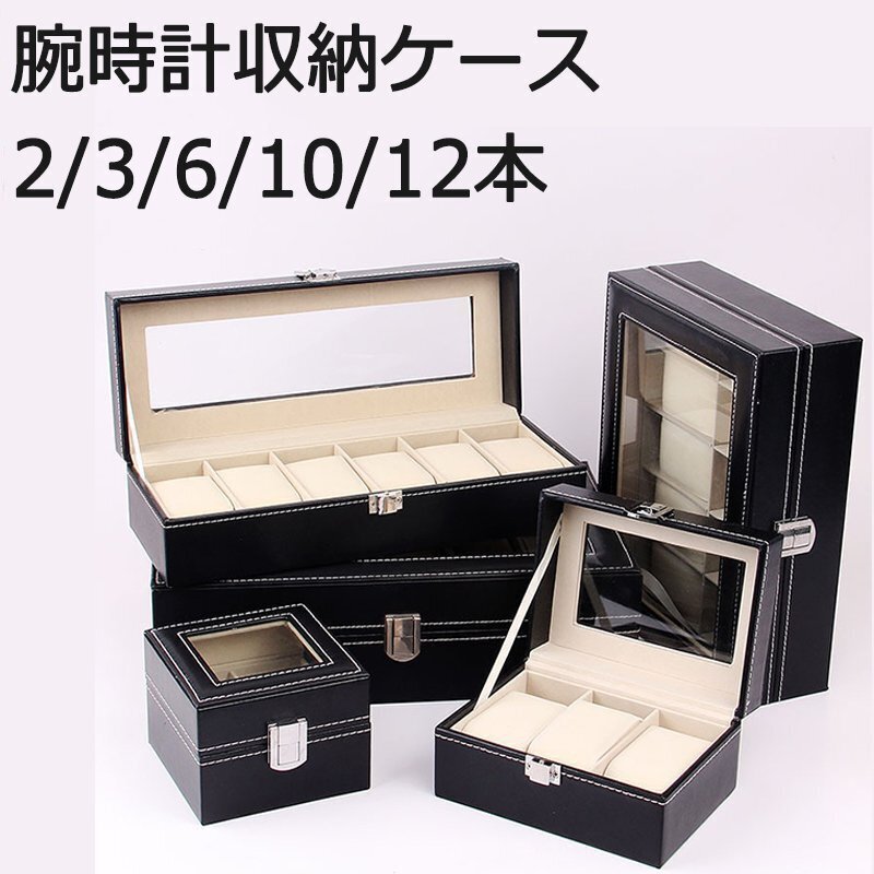 - 腕時計 収納ケース 12本用 PU革制 レザー 展示 ウォッチケース ボックス ブラック