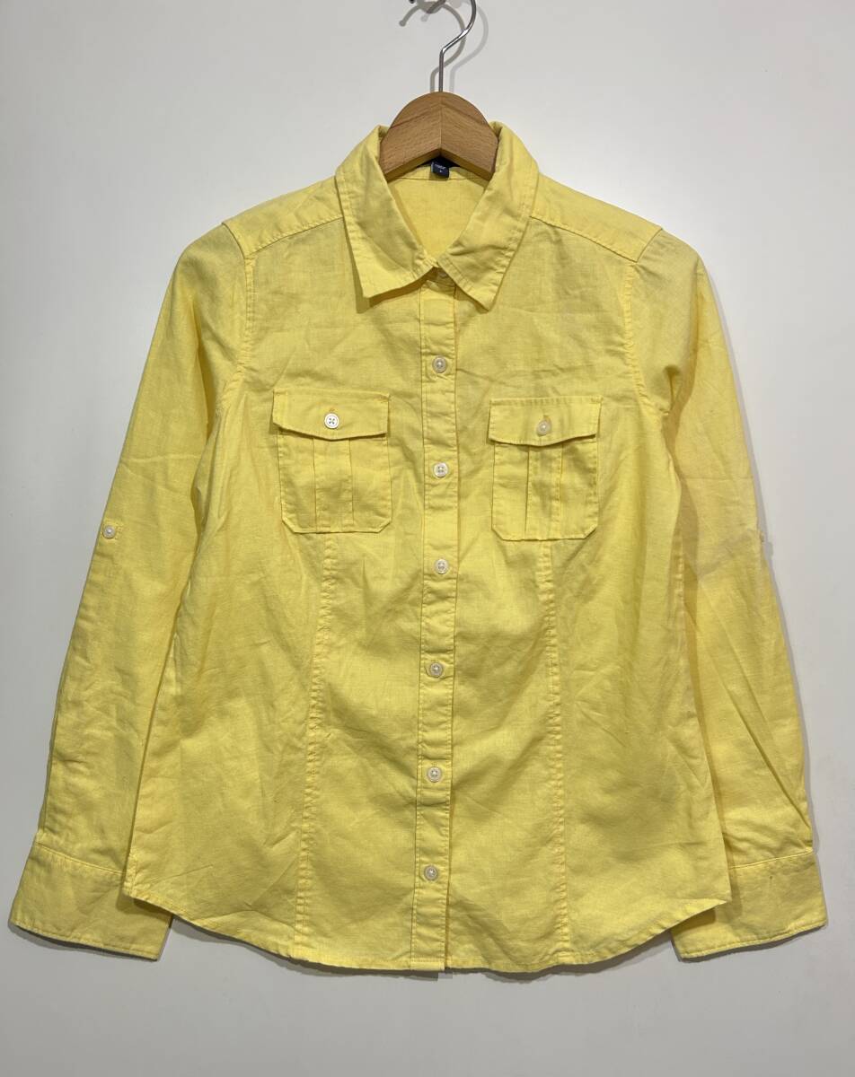 - ★ GAP レディース リネン混紡 長袖シャツ 綿麻 イエロー 黄色 無地 S ダブルフラップポケット 袖ロールアップ可