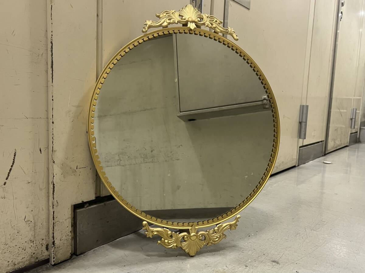 - 7B) 鏡 ヴィンテージ ウォールミラー 壁掛け ゴールドフレーム 金色 高さ約59cm 中古品 0926