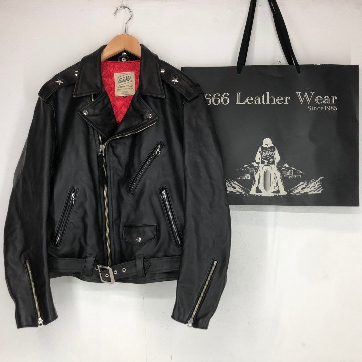 - 666 トリプルシックス MADE IN JAPAN ワンスター ライダースジャケット 牛革 レザージャケット SIZE: 44 ブラック MH632025091509