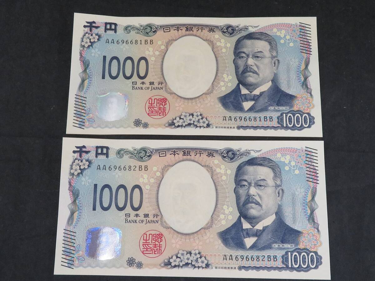 - 美品 連番 2枚セット 日本銀行券 AA-BB券 新紙幣 北里柴三郎 1000円札