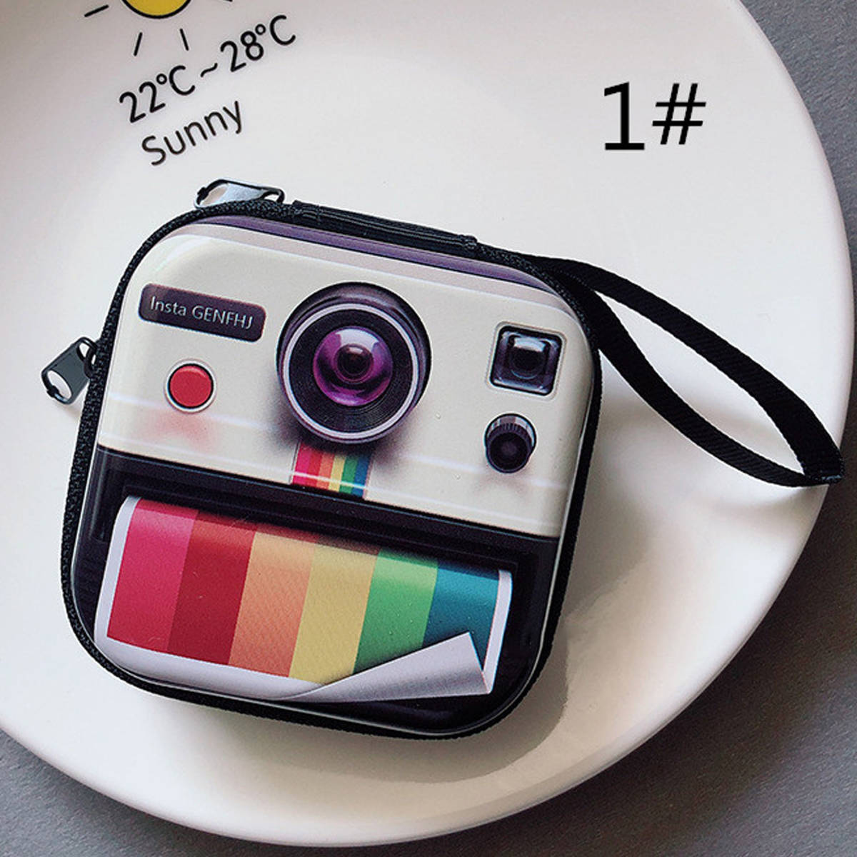 - ☆sale☆未使用品☆POPプリント小物入れ#1・ストラップ付き /イヤフォンケース/アクセサリーケース/コインケース/プチ収納/レトロ柄