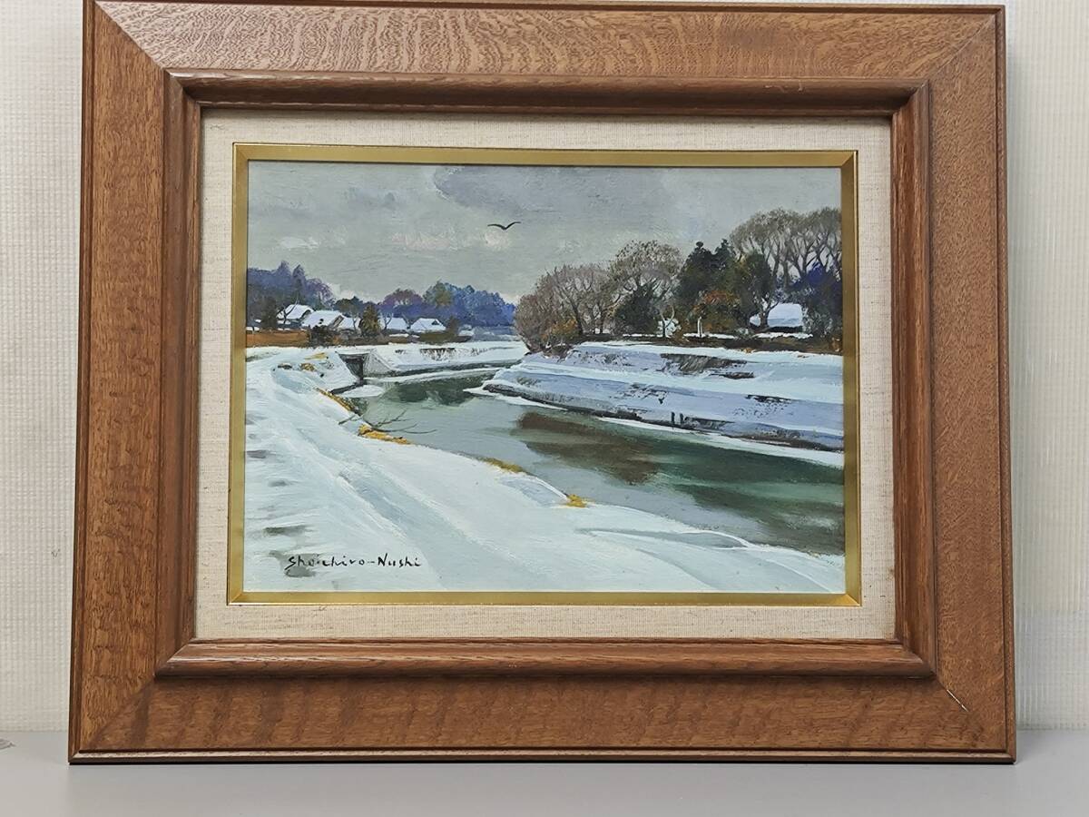 - 【真作】◆塗師祥一郎◆日本芸術院 【雪後の川辺】 油彩 4号 直筆サイン