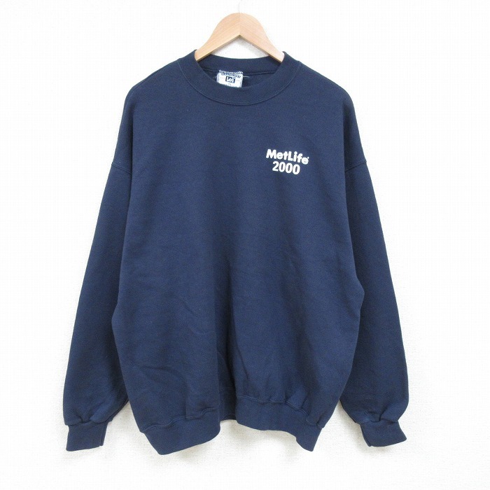 > XL/古着 リー Lee 長袖 スウェット メンズ 00s MetLife2000 クルーネック 紺 ネイビー 25mar04 中古 スエット トレーナー ト