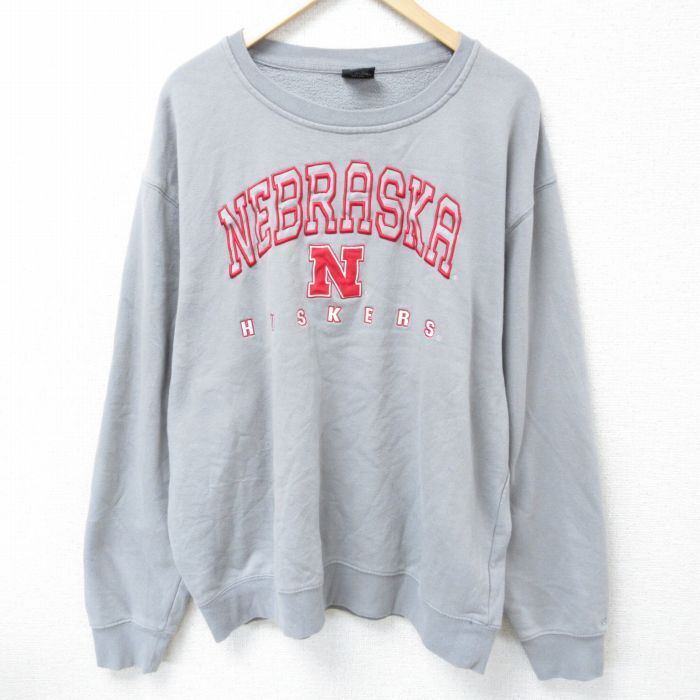 - XL/古着 長袖 スウェット メンズ 00s ネブラスカコーンハスカーズ 刺繍 大きいサイズ クルーネック グレー 25apr11 中古 ス