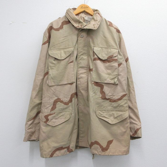 > L/古着 長袖 ミリタリー フィールド ジャケット メンズ 80s M-65 デザートカモ ロング丈 ベージュ他 カーキ 迷彩 25mar21 中
