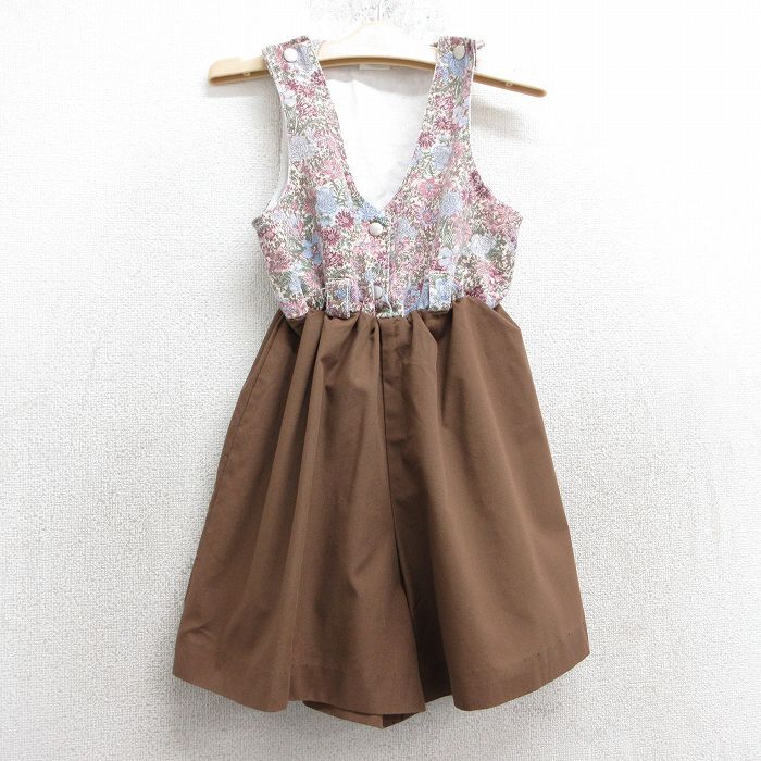 > 古着 ガールスカウト サロペット キッズ ガールズ 子供服 80s 花柄 コットン 茶他 ブラウン 25apr10
