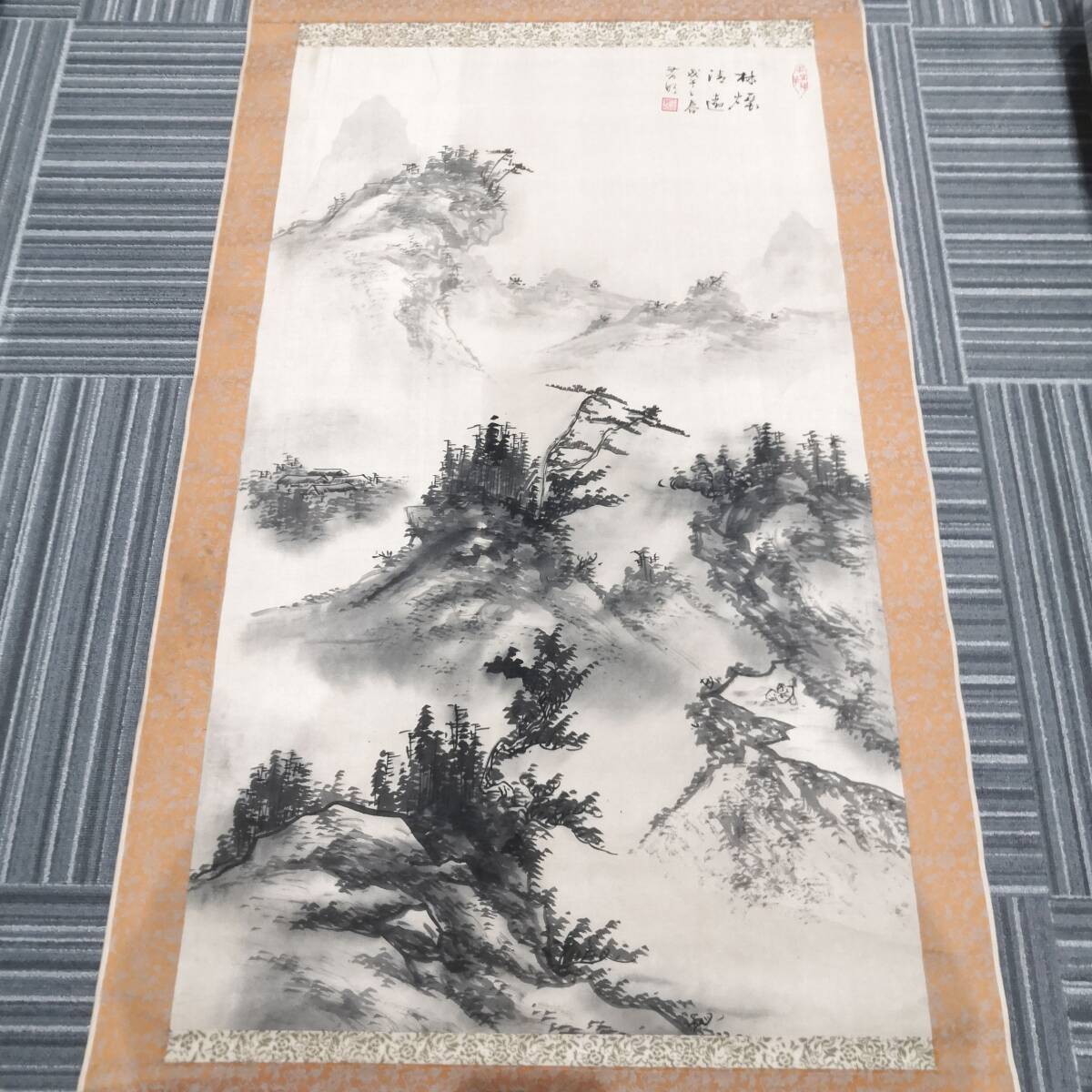 - 【8】風景 山 巻物 掛け軸 掛軸 日本画 骨董 日本書 伝統品 骨董品 時代物 年代物 美術品 芸術品 コレクション