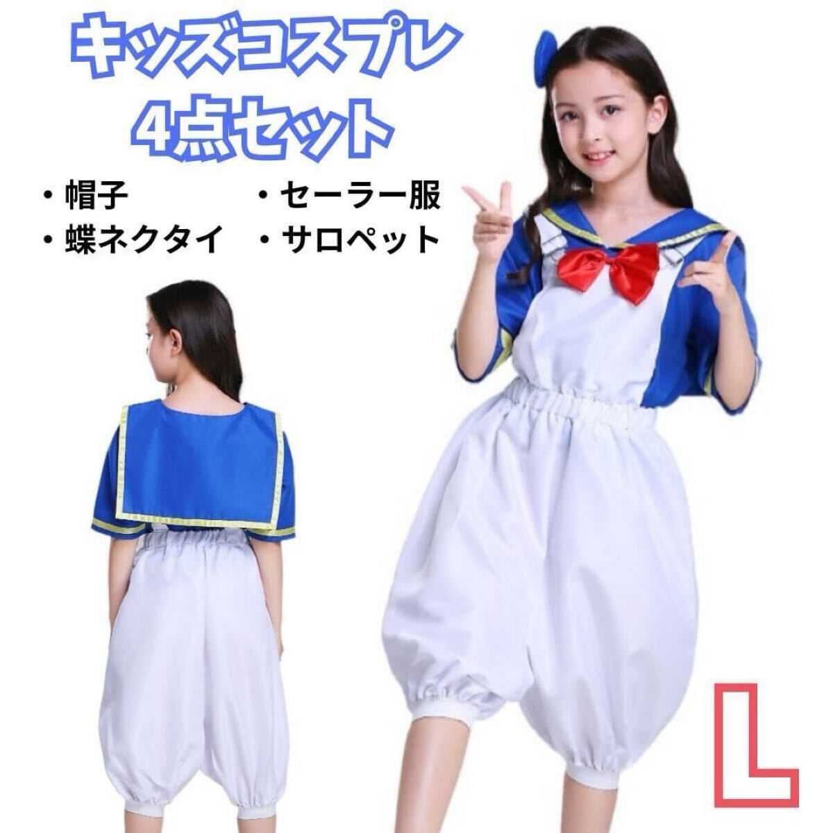 - 新品!コスプレ衣装 キッズ L ドナルド 4点セット セーラー服 サロペット 仮装