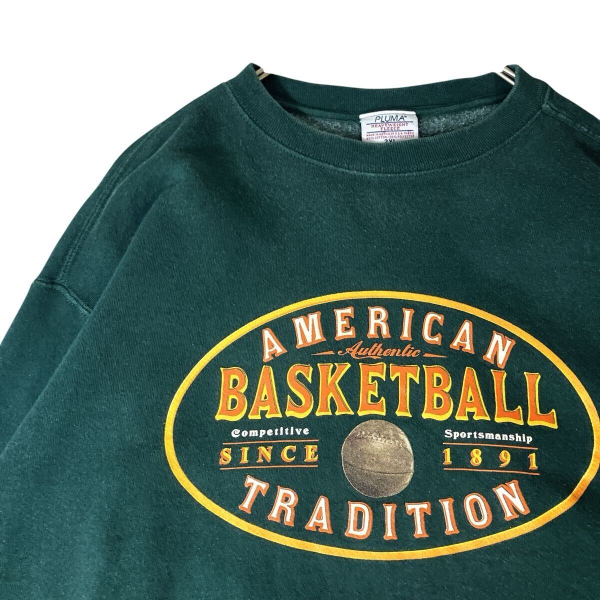 > PLUMA製 ヘビーウェイト カレッジスウェット スウェット バスケ2XL 00s 緑グリーン古着 スウェット トレーナー US古着 ビッグシルエット