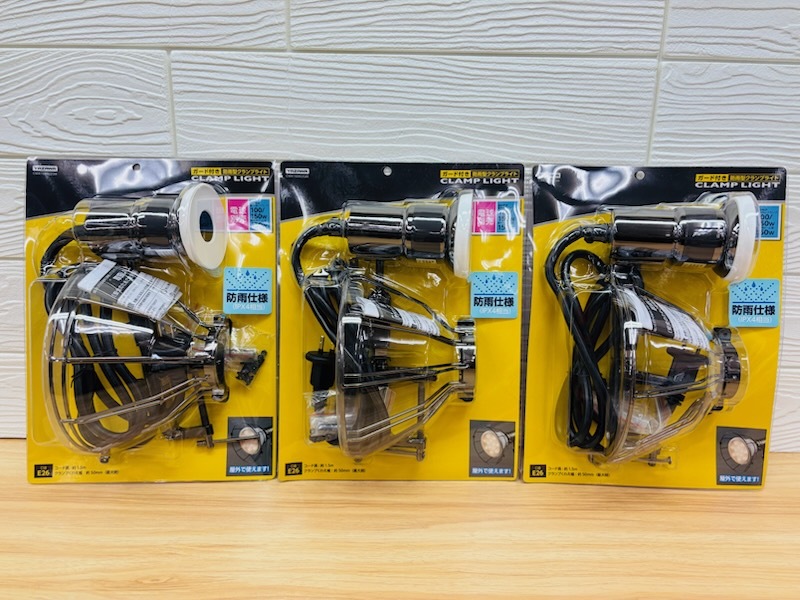 > A655 新品 ヤザワ 3個 雨に濡れても錆びにくい 屋外用 防雨型 クランプライト E26 ガード付き ガンメタ コード長 1.5m 看板 ガーデニング