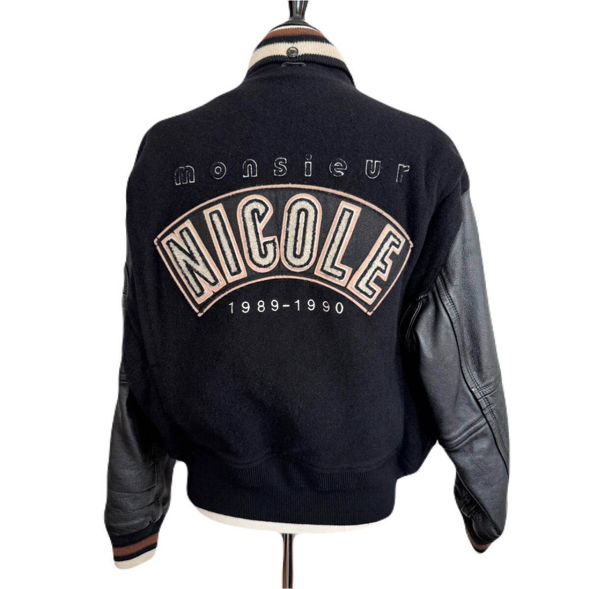 > 90s archive 初期 monsieur NIKOLE ムッシュ ニコル 小林由紀夫 ウール スタジャン ブルゾン 牛革レザー ブラック ヴィンテージ DC古着Y2K