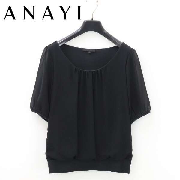 - 【KA198】美品◆ANAYI アナイ シアー袖 ギャザー ブラウス トップス 黒 ブラック 38