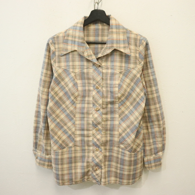 > i594 70sビンテージ 長袖シャツジャケット■1970年代製 Sサイズぐらい レディース ブラウン チェック コットンポリエステル 古着卸 激安