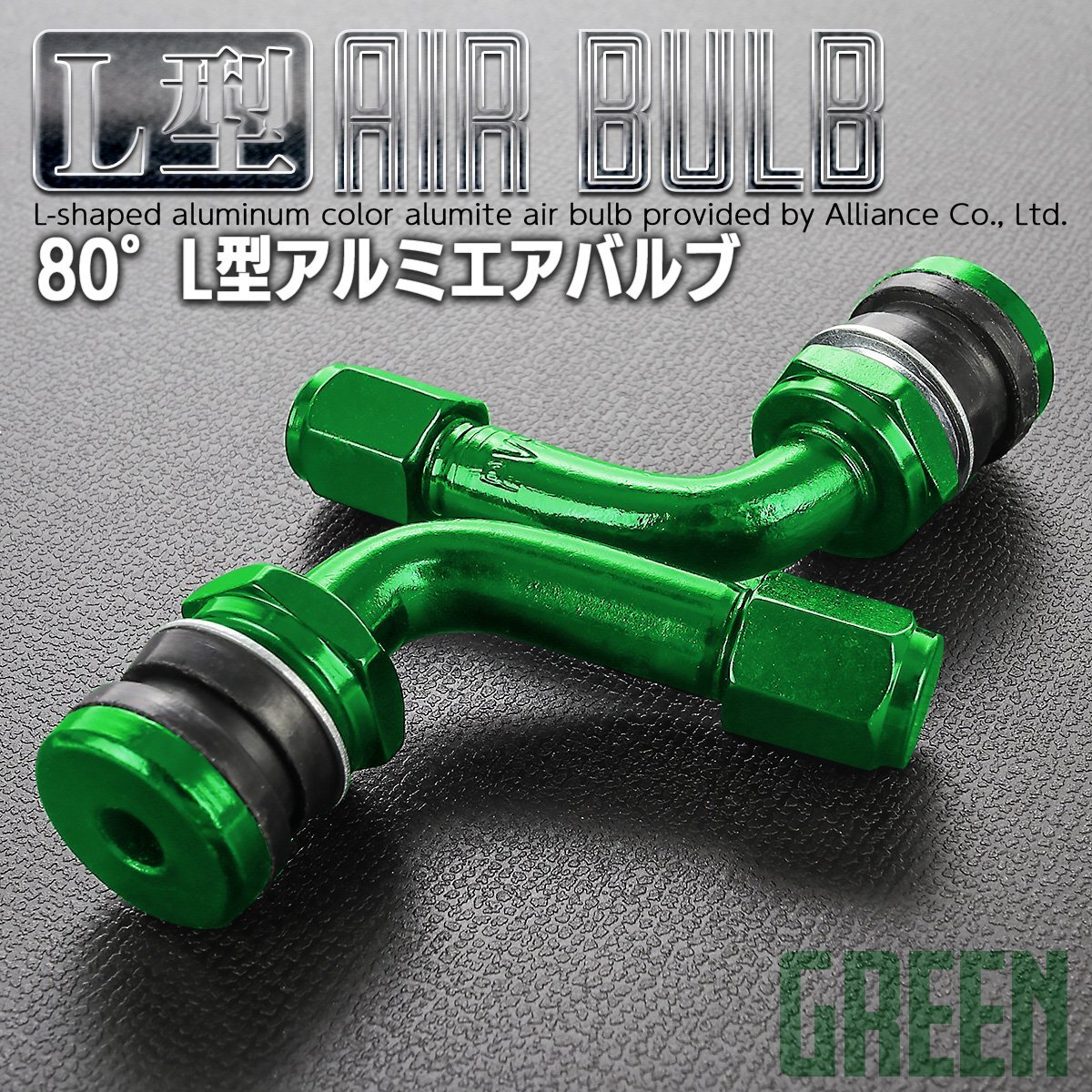 - 汎用 アルミ削り出し エアバルブ L型80度 チューブレス専用 空気圧調整を簡単に ホイール周りのドレスアップに 2個 グリーン S-315-GR