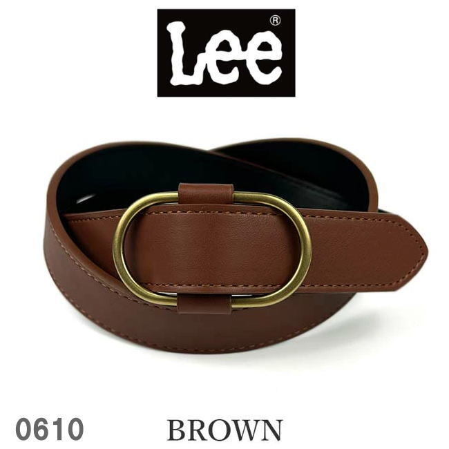 - ブラウン LEE リー PUレザー ピンレス 2.8cm 合成皮革 リングベルト 0610