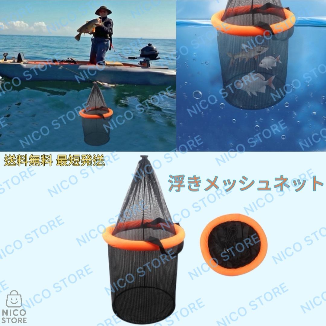 - 釣り フィッシュバスケット 折りたたみメッシュネット 浮き付き 魚網籠 フィッシング用品 釣り用品 レジャー 網 新品 送料無料 最短発送