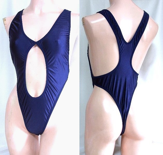 - ★☆コスプレ用 つるつる紺セクシーへそ出しTバックハイレグレオタード☆★