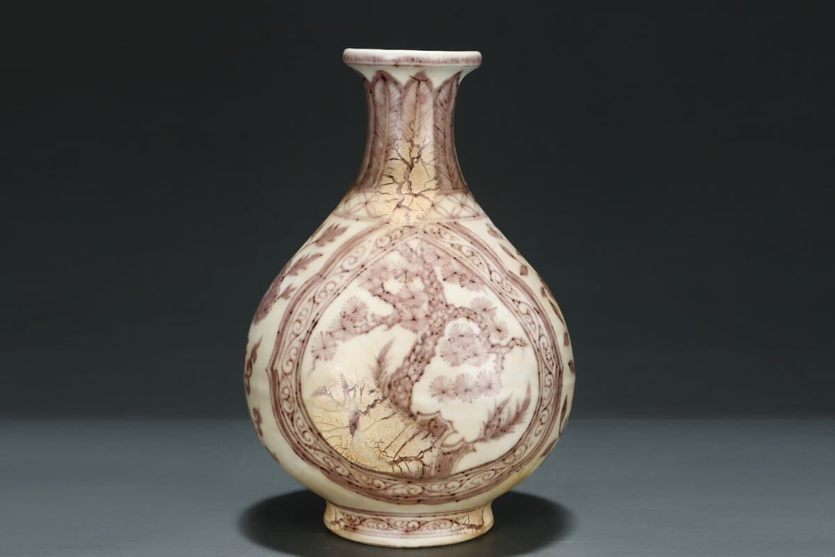 > 【竹河】中国古美術 明時代 旧藏 釉裏紅 花瓶 玉壺春瓶 時代物 唐物 古玩 骨董 藏出 置物 vt25