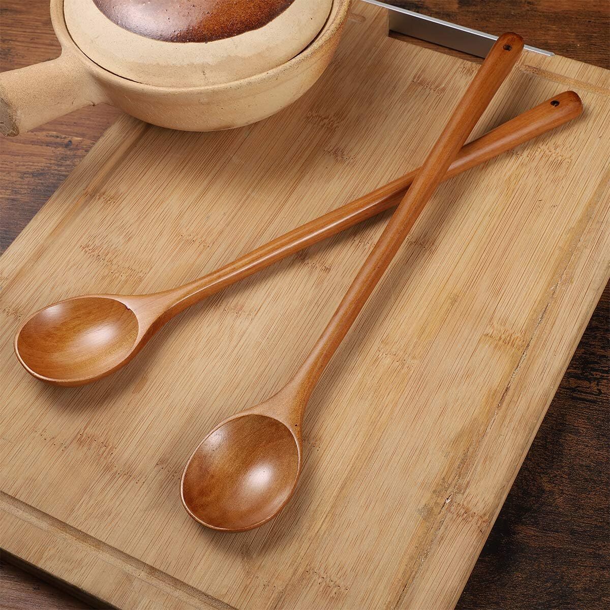 - ファッション 木製ロングハンドル調理スプーン 2本セット 高耐熱性 レストラン用