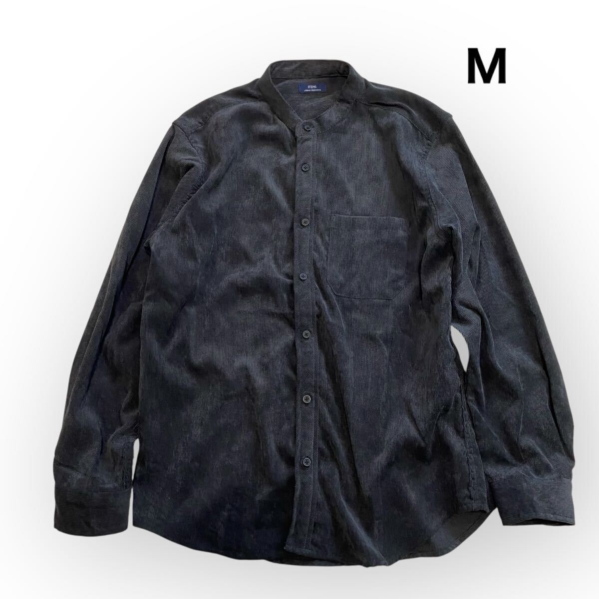 - ITEMS アーバンリサーチ コーデュロイ スタンドカラーシャツ 長袖シャツ ダークグレー メンズM 秋冬
