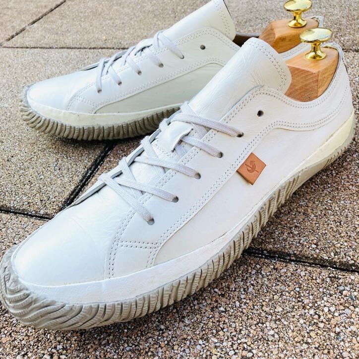 > ★即決★ スピングルムーブ SPINGLEMOVE L 26.5cm レザースニーカー シューズ 白 ホワイト アイボリー カンガルーレザー 巻き上げソール