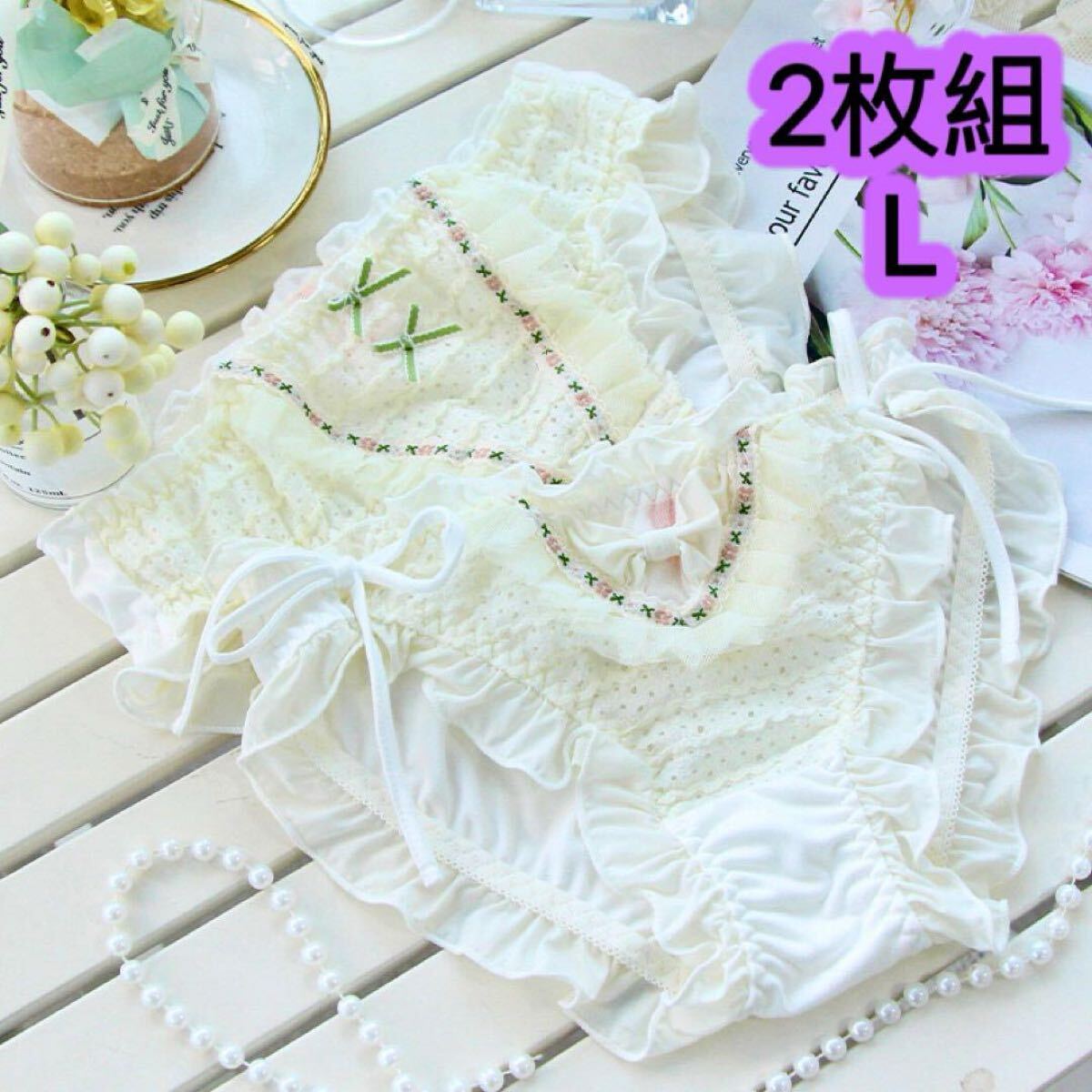 - 2枚組Lレディース下着 フリル付き リボン&レース可愛い女の子ショーツ 433号