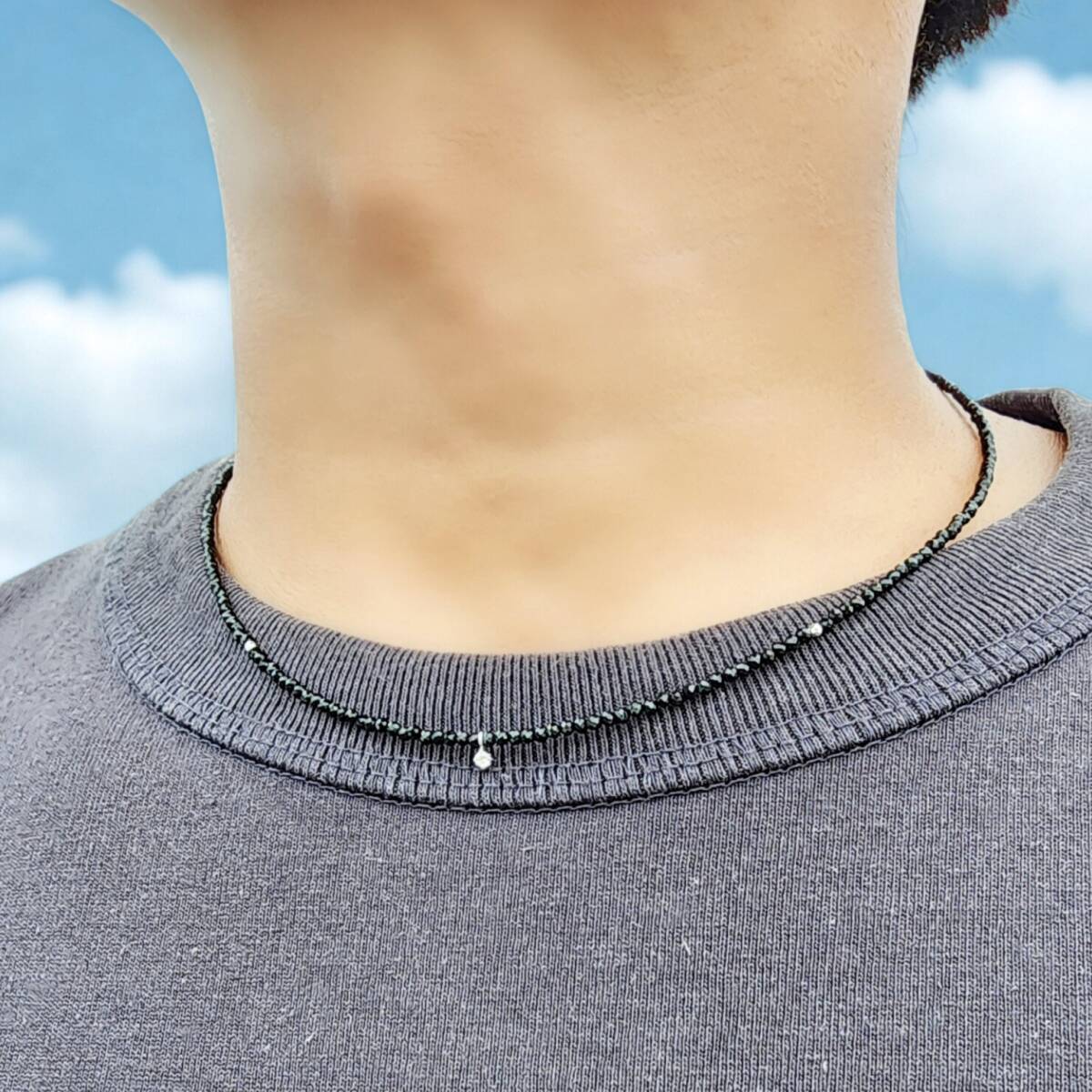 - 【本物保証】18金 ホワイトゴールド 0.03ct ダイヤモンド ブラックスピネル 高級 パワーストーン ネックレス 長さも選べます 贈り物 ギフト
