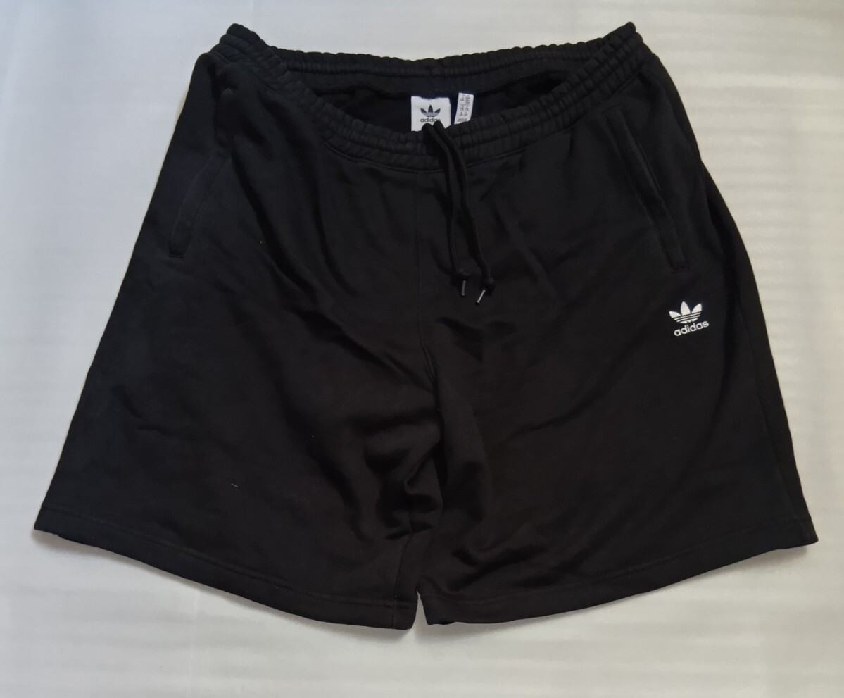 > ☆adidas.com 2XLジャパン6XLハーフ短パンツ半ズボン黒色ブラック刺繍トレフォイル白ジッパー ポケット洗濯済スポーツ ボトムス アディダス