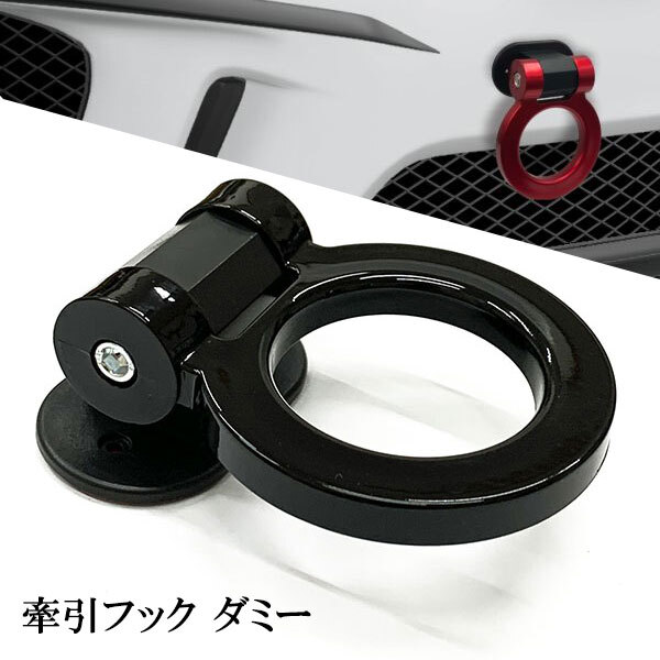 - ダミー牽引フック 可倒式 ドレスアップ 汎用 フロント リア対応 ABS樹脂ステッカー 貼り付け 車 カスタム 角度調整 丸型 ブラック