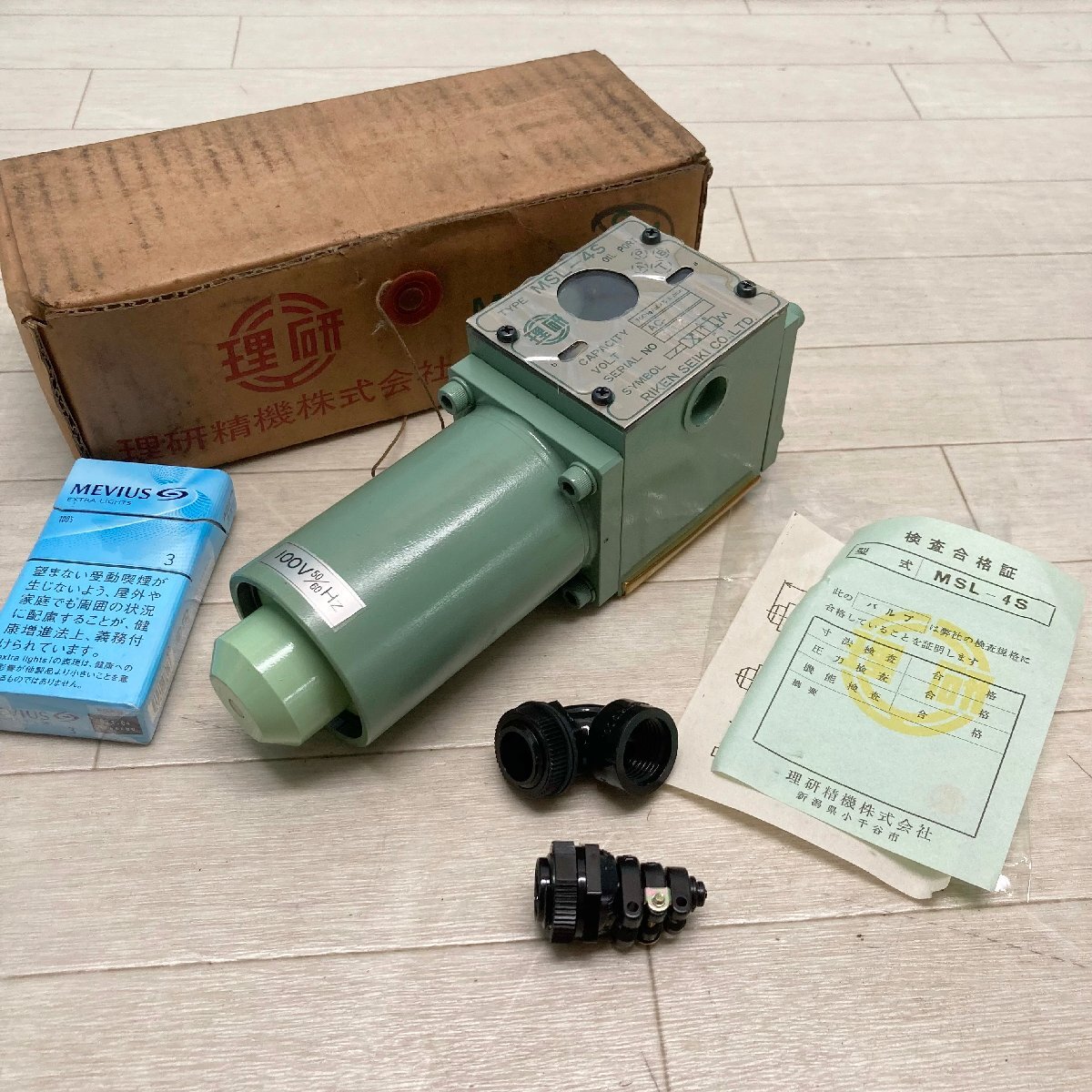 > 今落n626 RIKEN 理研精機 ■油圧バルブ 4方電磁切換弁 MSL-4S 100V 50/60Hz 700㎏/×5L/min